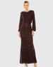 Red High Neck Long Sleeve Beaded Blouson Gown