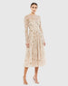 Beige Beaded Illusion High Neck Long Sleeve A Line Dress