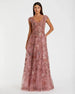 Stunning embroidered gown with v-neckline, cap sleeves, and allover jewel encrusted embellishments.