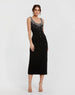Black Beaded Crepe Scoop Neck Sleeveless Midi Dress