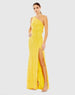 Crafted from luxurious sequin fabric, this stunning gown features a chic one shoulder neckline and a thigh high slit. The elegant draping at the back adds a touch of glamour, making it the perfect choice for any special occasion.