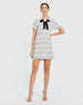 White Short Sleeve High Neck Boucle Mini Dress With Bow