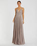 Nothing outshines the lady in this metallic lurex gown sprinkled with brilliant silver glitter. Cut in a swishy A-line silhouette with a mesh inset at the neckline, the flattering pleated gown is perfect for moving, grooving, and making fabulous lasting impressions.