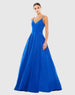 This timeless ballgown features a flattering V-neckline, delicate spaghetti straps, a sleek square back, and a chic belted waist. The full A-line skirt, layered with tulle, adds structure and elegance, making it the perfect choice for formal events.
