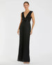 This elegant column gown features a v-neckline and beaded fabric, creating a sophisticated look. The empire waist design flatters the figure and adds a touch of glamour. Perfect for formal events and special occasions.