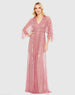 Pink Beaded Striping Kimono Sleeve V Neck Gown