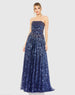 Crafted from hand-embellished fabric, this strapless gown exudes elegance and sophistication. Featuring a graceful A-line silhouette and a flattering strapless neckline, its flowy skirt moves with you for effortless grace. Elevate any special occasion with this stunning embellished gown.