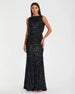Cowl Back Boat Neck Sequined Evening Gown
