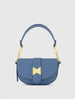 Blue Grain Leather Saddle Bag With Gold Hardware - FINAL SALE