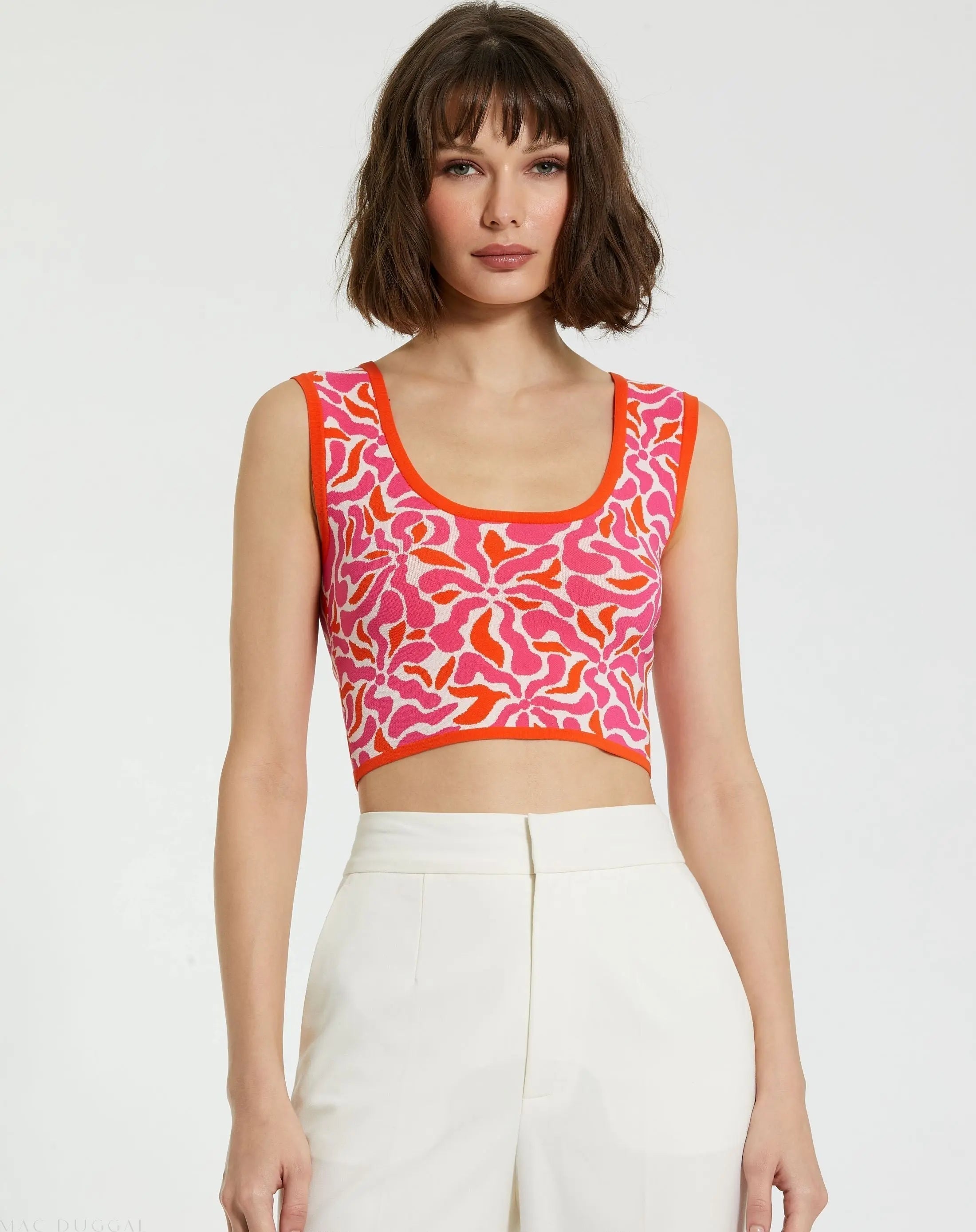 This Cropped Floral Knit Tank Top is a charming and stylish addition to your warm-weather wardrobe. Crafted from a lightweight, breathable knit fabric, this top features a vibrant floral pattern that adds a pop of color to any outfit. Pair with high-waisted trousers for an effortlessly trendy look.
