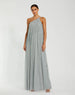 Introducing our One Shoulder Embellished Trapeze A-Line Gown, adorned with exquisite beaded embellishments atop a delicate tulle overlay. With its asymmetrical one-shoulder neckline and sleeveless design, this gown exudes modern elegance. The trapeze A-line silhouette offers a flattering fit, making it perfect for formal events and special occasions.