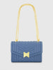 Blue Quilted Napa Leather Handbag With Gold Chain