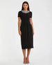 Make a statement in this elegant dress, featuring a hand-embellished collar with beads and encrusted rhinestones, it's the perfect look for any special occasion.